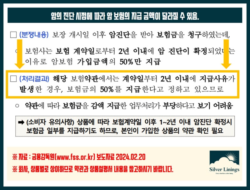 보상은 최초 1회만 제공됩니다. 통합암은 암을 신체 부위로 나누어 각각 비용을 지불하는 특징이 있다고 합니다.[보험사 상품별로 다릅니다.]예를 들어 유방암으로 5000만원을 받고 2년 뒤 자궁암 진단을 받으면 5000만원을 추가로 받게 된다. 이런 방식으로 여성은 최대 12개, 남성은 최대 8개까지 혜택을 받을 수 있다. 여성의 경우 : 유방암, 자궁암은 발병률이 높기 때문에 각각 담보를 받는 것이 유리합니다.* 일반암의 경우 비교 원발부위를 기준으로 보장하기 때문에 전이암에 대한 불만은 없습니다. 전이성 부위로. 그들 중 많은 수가있었습니다. 암은 전이될 가능성이 매우 높기 때문에 전이된 암을 포함시키는 것도 도움이 됩니다. 6. 암보험가입 요약! 오늘은 다양한 회사의 암보험 보상내역과 가입조건, 지급조건에 대해 알아봤습니다. 효율성과 경제성 비에 집중하는 것이 중요하며, 먼저 우수한 구성을 확립하고 업체 비교를 통해 어떤 옵션이 가장 좋은지 확인하시기 바랍니다. 또한, 이해하지 못하는 부분이 있으면 반드시 확인하고 확인해 주시기 바랍니다. 더 궁금하신 점이나 고민사항이 있으시면 언제든지 연락주세요! 오늘도 시청해주셔서 감사합니다. 이 정보가 도움이 되기를 바라며 행복한 하루 보내시기 바랍니다.