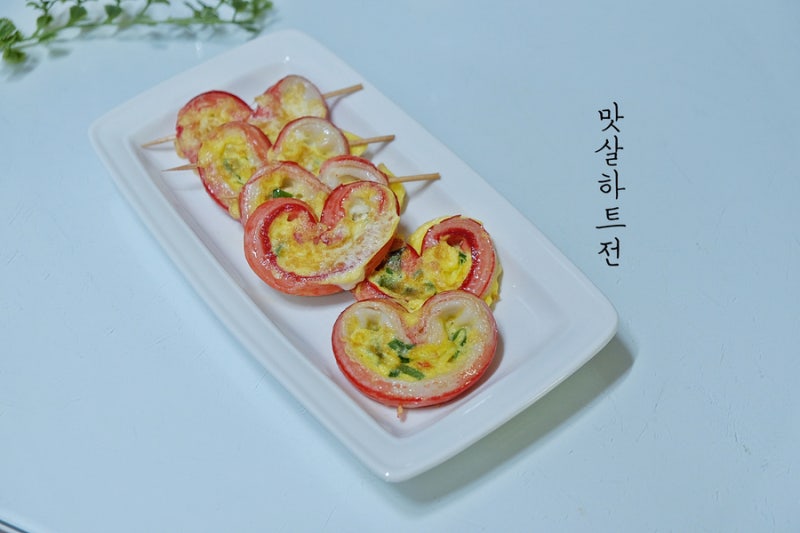 하트 모양으로 구부릴 때는 조금 주의가 필요할 수도 있고, 모양을 만든 후 이쑤시개로 고정하는 데 약간의 노력이 필요할 수도 있습니다. 그럴 땐 전자레인지에 살짝 데워서 사용하면 부드러워요!) ) 그런데 만들어보면 너무 예쁘고 맛도 좋아서 명절때마다 꼭 만들어 먹거든요^^